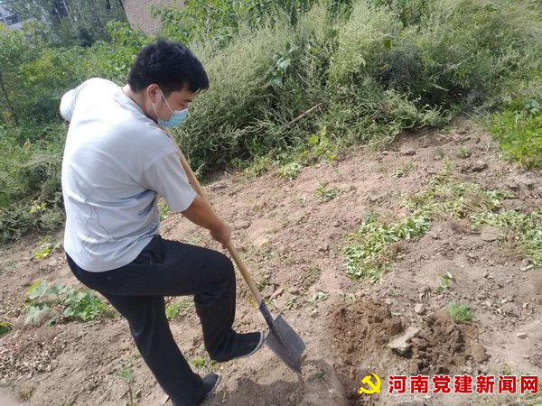 在线上考期末考试完结束后取得优异成绩后。由于今年的疫情特殊原因,学校没有组织“三下乡”活动。聂升君同学主动在三门峡新兴村参加,帮扶建档立卡群众,贫困群众,做一些农活,开垦荒地,秋收玉米,在炎炎夏日,农田里,掰玉米,拔花生,地里锄草,用镰刀割芝麻。汗流浃背,仍一个劲的劳动。将秋收的农作物,用扁担挑回困难群众家里。