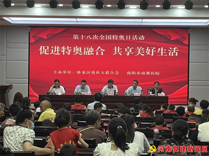 河南党建新闻网讯(通讯员 宋振辉)“残云收夏暑,新雨带秋岚”。每年的7月20日是“全国特奥日”。7月19日上午,卧龙区残联联合南都医院、卧龙区智力亲友协会,在南都医院开展第十八次“全国特奥日”暨“促进特奥融合,共享美好生活”趣味运动活动。卧龙区残联党组书记、理事长李自党、南都医院副院长高晓峰出席,活动由南都医院工会主席李萍主持。现场共计100余名残疾儿童及家长亲友参加。