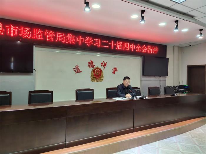 10月28日下午,扶沟县市场监管局召开“集中学习党的二十届四中全会精神”会议,党组书记、局长郭法亮作了以“学习四中全会精神,奋力推进市场监管事业高质量发展”为主题的讲党课活动。局机关全体党员干部职工参加了活动。