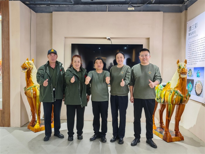 随后,王一萍会长一行前往儋州,走访慰问河南籍退役老兵创办的唐三彩博物馆,实地参观馆藏珍品,感受传统工艺的魅力与退役军人的文化担当。馆内一件件釉色绚丽、造型古朴的唐三彩作品,承载着中原文化的深厚底蕴,更凝聚着退役老兵传承中华优秀传统文化的执着坚守。王一萍会长对博物馆的建设成果与老兵们的文化情怀给予高度赞赏,她表示:“退役老兵既是保家卫国的功臣,也是文化传承的生力军。唐三彩作为国家级非物质文化遗产,兼具艺术价值与历史内涵,海南省退役军人服务协会将充分发挥平台优势,大力宣扬推广这一优秀传统文化,通过组织文化交流、展览展示等活动,让更多人了解唐三彩的魅力,同时为退役老兵搭建文化创业、成果转化的广阔舞台,让退役军人的智慧与力量在文化传承中绽放光彩。”