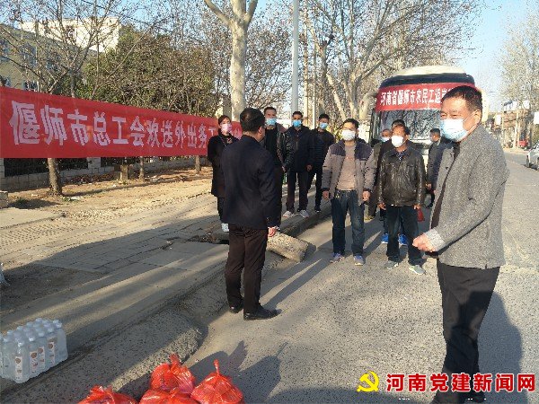 偃师市总工会党组书记、副主席陈弘钉嘱咐大家:要注意个人防护,到岗履行好本职工作,遇到困难问题找工会。工会将竭尽全力做好维护农民工权益的坚强后盾。