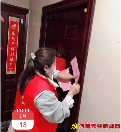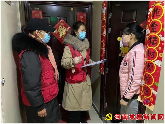 靳亚楠(左)和侯贝贝(右)是观悦社区工作者,也是社区防控一线最佳拍档。疫情发生后,两位90后“小姑娘”第一时间返回工作岗位,针对走访排查可能出现的“漏洞”,开拓思路,利用“水电气”大数据,对“异常”运转情况进行跟进排查。2月15日上午,物业反馈有一户登记信息显示还没有返郑的居民,家中的电表和水表连续两天都在运转。接到报告后,她们第一时间对该户的电表箱和水表箱前后数据进行比对,最终确定该户有人居住。联系后得知,该户居民全家只有一名孕妇返郑,怕被隔离了生活无法保证才刻意躲避登记,她们一边对其批评教育,一边安慰其说居家隔离期间社区会提供周到细致的服务。