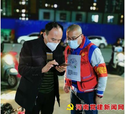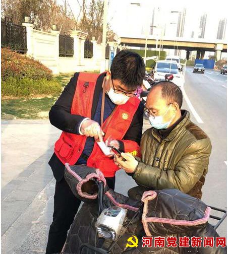 徐威(左)是观悦社区党支部党员,也是社区志愿服务队负责人。疫情发生后,他第一时间从老家返回郑州,并主动承担了最苦最累的活。宣传部署、深入一线、动员热心居民,在他的号召下,2支24小时疫情防控志愿服务队伍迅速组建,协助物业管理门岗、发动居民协调物资、环境消杀、防疫管控……。短短几天时间,年轻的小伙消瘦不少,疲惫不堪的他还是毫无怨言,每天早早出现在一线岗位上。