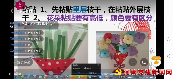 为了备好一节美术课,从最初学习如何直播,到查找美术素材,画范画,做课件,她都一步一步认真准备。美术课最重要的就是让学生学会绘画步骤,哪怕是一个非常细小的绘画技能点,她也要一个字一个字地敲在PPT上。为了授课效果,她尝试着把绘画步骤一步一步拍成图片、拍摄制作步骤的小视频等多种模式,在学生自己练习时她也会反复强调一些绘画技巧,力求让学生能真正掌握绘画步骤,在美术课上能学到有用的知识。一切的一切都是为了让学生们在家中仍能拥有一个良好的学习体验。
