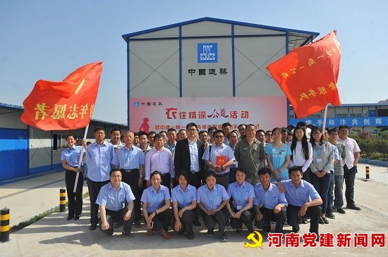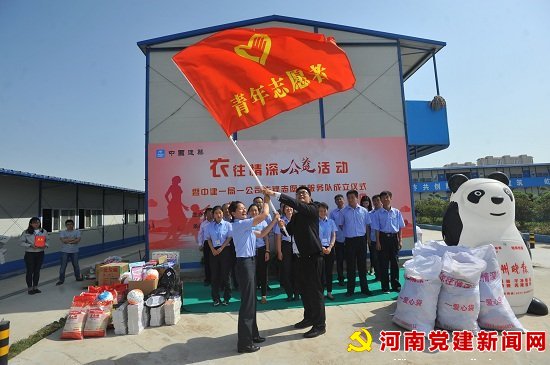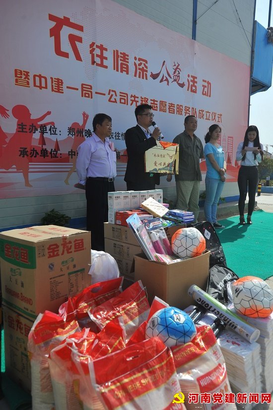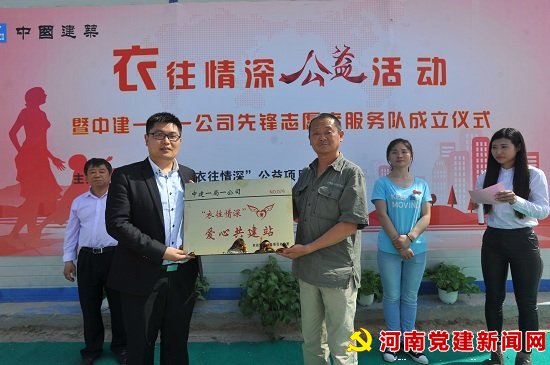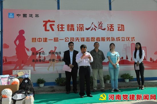 本网讯:5月4日,由郑州晚报“衣往情深”公益组织与中建一局一公司联合共建的第79“爱心公益”爱心共建站成立仪式及衣物接收仪式和中建一局一公司 “先锋志愿者服务队”成立仪式,在中建一局一公司河南分公司郑东新区刘集02号安置区三期(豫兴家园)项目部隆重举行。