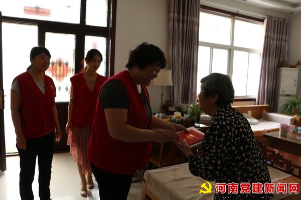 志愿者到退休党员王银华家中进行“送学上门”活动,本次“送学上门”活动中,一个是为王银华同志过政治生日,送去生日祝福、送上生日礼物--政治生日贺卡、党建读物《共产党宣言》,当王银华同志拿到贺卡和书籍时激动的说“还是共产党好,我要感谢党”;二是询问了王银华同志生活、学习情况,通报了卫健委近期的工作,特别是创卫工作的开展情况,随后对 “两学一做”常态化制度化学习教育活动有关内容、十九大有关精神、习近平在纪念马克思诞辰200周年大会上的讲话等进行了简要的讲解。