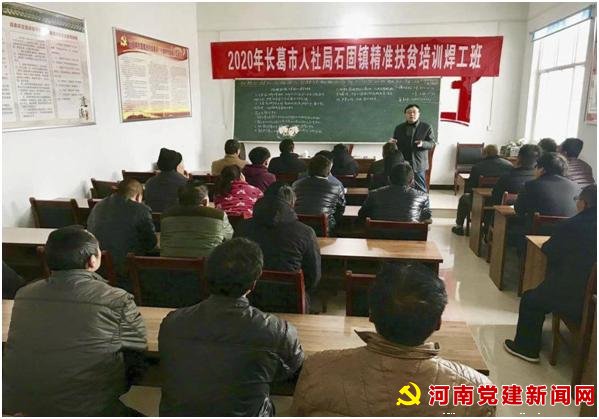 石固镇沈庄村贫困群众在“打工直通车”报名后参加实用技能培训班