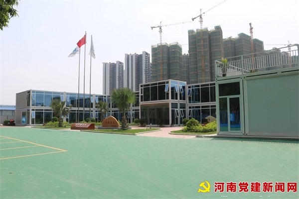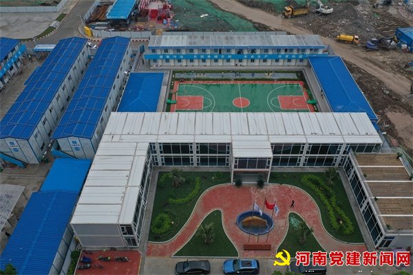 项目部的临建也均按照争创系统内CI金奖的高标准配置,办公区加装玻璃幕墙,生活区配备标准篮球场,同时均采用折叠式箱式房。