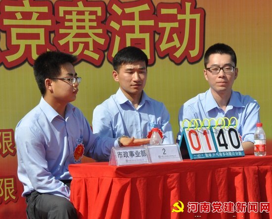 中建七局安装公司市政事业部代表队竞赛选手正按抢答器答题