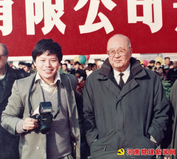 1992年12月12日上午,在项城莲花味精集团莲花味之素开工庆典现场,作者尹程起与王光英先生合影. 王鸿飞 摄影
