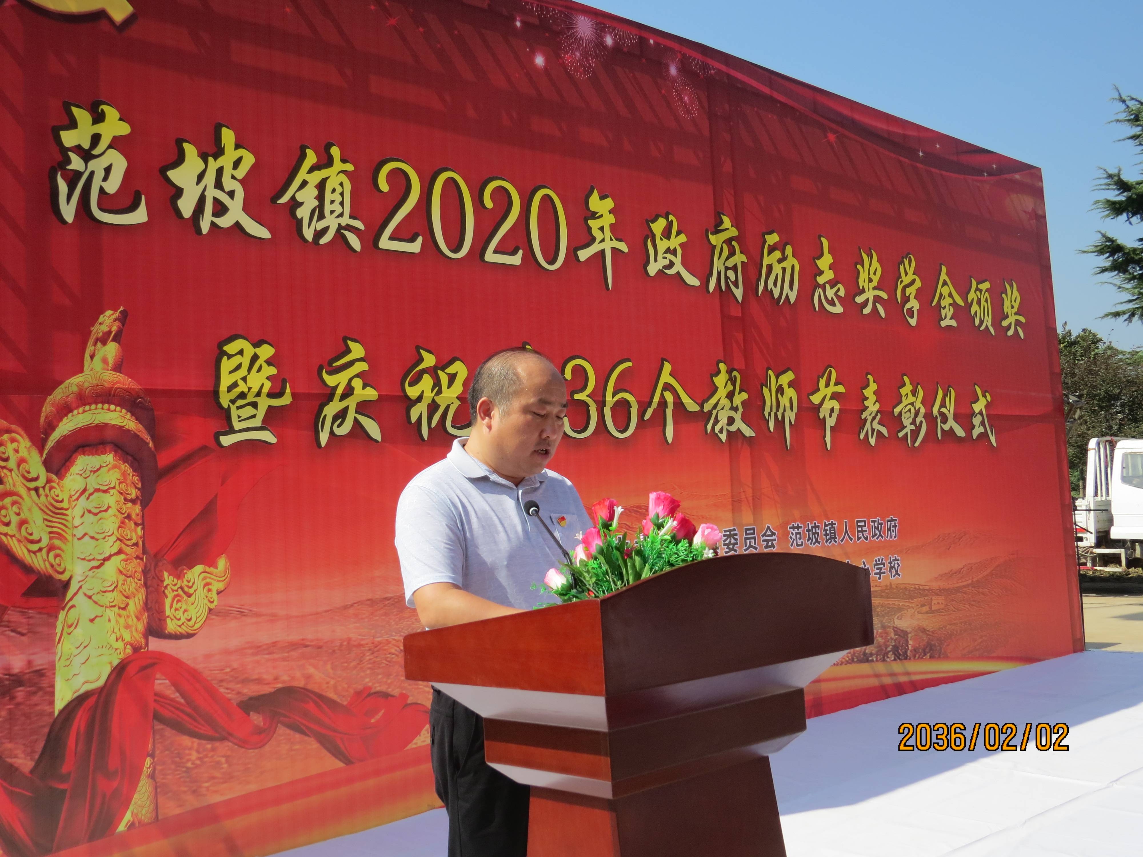 9月7日,范坡镇举行“政府励志奖学金”暨第36届教师节表彰大会,表彰2020年高考取得优异成绩的11位优秀学子和在2019—2020学年成绩突出的优秀校长和优秀教师。