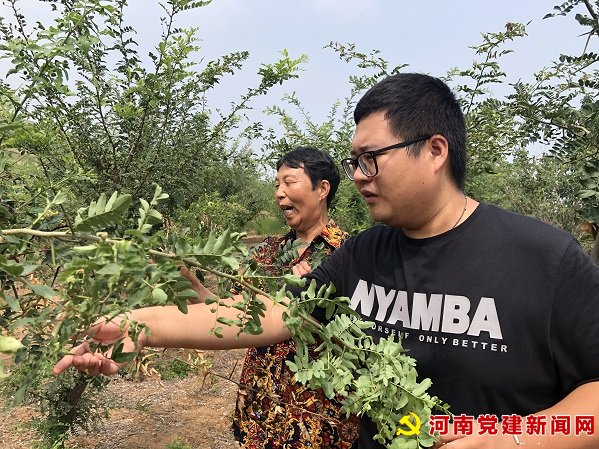 “在小彭书记的帮助下,2018年9月,我在村南山坡承包了18亩坡地,种植中药皂角树,皂角树浑身上下长满的皂刺是一味好中药,俺们这俗话叫‘马丁刺’,听说这东西能消肿托毒、排脓、杀虫,用处很大,市场价格也不错。我不懂种植技术,是小彭书记自己去学了之后,手把手教给了我。家里缺人手,种植皂角树从栽树到打药、拔草、施肥,都是小彭书记跟我一块儿干的。到了收获期,不知道从哪儿找销路,又是小彭书记在网上找的销售渠道。不仅如此,小彭书记还帮我申请了5000元特色种植补贴,加起来年收入将近5万元,日子越过越煊了!”