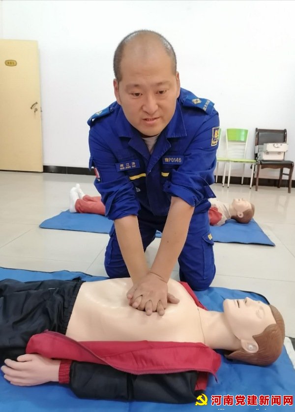 在培训课堂上,闻江涛首先,为大家列举了过去急救生动的案例,向大家强调了应急救援的重要性,并着重分析以往案例中错误的救援方式,希望大家引以为戒。详细讲解了中暑、溺水救护的基本技术;随后,围绕心肺复苏紧急救护的基本原则、方法和步骤进行了详细的讲解,并通过模拟人对中暑、溺水救护等各项操作进行了示范演练,让全体人员对心肺复苏的全过程有了更深刻的理解。接着,闻江涛用模拟假人,通过现场演示等方式,让在场同志们能够熟悉掌握应急救护的基本技巧,特别是在遇到身边有人发生心脏骤停、呼吸停止的时候,该如何为其进行心肺复苏的正确方式及技术要领。随后,应急救援培训围绕心肺复苏术、海姆立克急救法、动脉出血等知识展开,并进行了现场实操演示和实战操作,确保应急救援知识深入人心。理论授课结束后,每位同志在课后进行了示范性操作,对模拟操作训练中出现的错误动作,并逐一进行了分析和讲解,手把手地进行辅导,能达到动作规范、操作熟练。