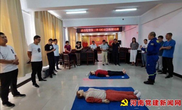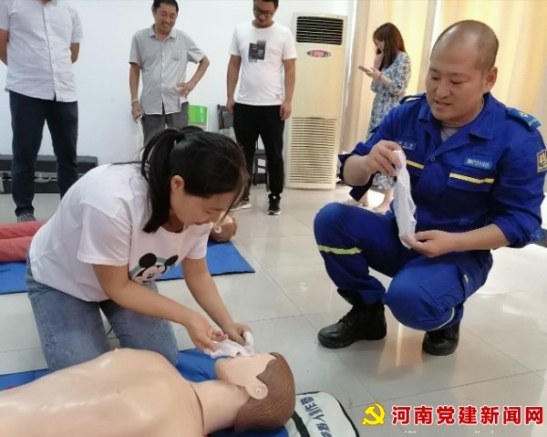 本网讯( 通讯员 曾省三 尹程起报道)夏季来临,天气多变,连降暴雨,汛情严峻,溺水事故频频发生,河南省周口市商务局机关党委为增强全局人员防溺水方面的知识,提高自我保护意识和救援能力,近日,邀请周口蓝天救援队的闻江涛博士和李利峰两名同志,为广大干部职工进行了应急救援培训。