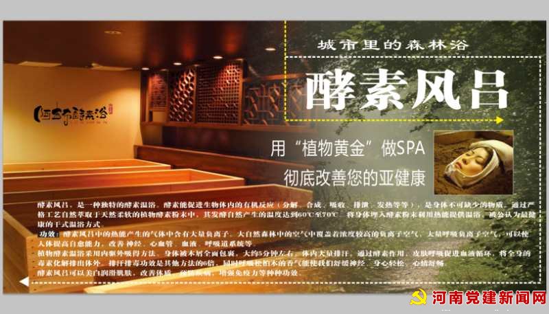 据了解,酵素温浴又名酵素风吕 它是运用珍贵的柏科木粉为基本环境,添入特制发酵的天然酵素,利用微生物自然发酵产生的热能让身体达到自内而外的排泄,排毒效果。酵素浴自然发酵产生的温度能够达到60-75度, 促使血液循环速度加快,把血液中对人体有害的二氧化碳谷毒素,重金属乳酸等代谢废物伴随汗液排出体外,同时张开的毛孔吸入酵素浴中蕴含的5000余种活性酶,负氧离子各种微量元素等,随着毛细血管的微循环,进入脏腑快速补充身体缺失能量,使血红细胞恢复饱满,增强免疫,用“植物黄金”做SPA彻底改善您的亚健康。