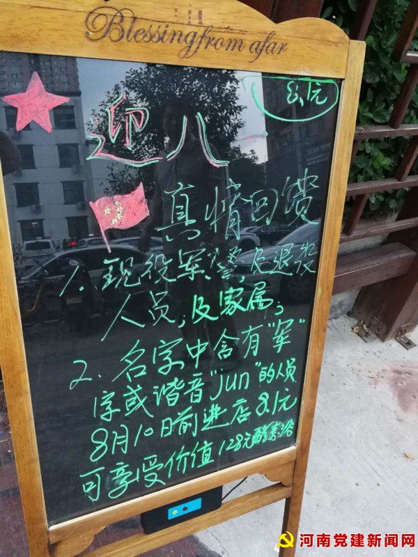 本网讯(通讯员 赵朝阳)在八一建军节到来之际,阿吉布酵素浴在郑州推出关爱军人献礼特惠活动,体现和平年代,不忘人民子弟兵,军民鱼水情!
