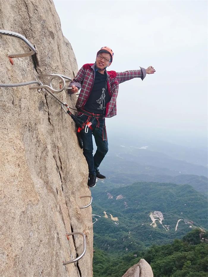 坐在缆车之内,只听外面风呼呼地刮,雨点从缝隙处打了进来,里面凉飕飕的,使我顿时想起了电影《中国机长》的场景,不仅顿生恐慌,不过很快也就到达下索道处。雨一直在下,风仍然在刮,又步行一段来到一个岔路处,一面是直路比较陡峭,坡度约有70度但路近,另一处虽缓但路远。我们合议之后就选择了走直路,由于台阶太陡太窄,大家不得用脚横行前进,有的游客一步一步往上爬,并坐在台阶上休息片刻。经过攀爬终于到达五朵山金顶了,南顶武当山,北顶五朵山,道教名山,南北呼应。听当地人说,如果在雨后初晴之时在此眺望,能看到南阳和南召县城的楼房,“会当凌绝顶,一览众山小”的感觉油然而生。虽然当时雾气蒙蒙,烟雾缭绕,风雨大作,四周看不到什么美景,但是看到了云雾,看到了雾锁山头的景象,知道了“积土成山,风雨兴焉”的道理,别有一番滋味在心头,也算不虚此行。只见这雾幻化成千奇百怪的形状和颜色,一会儿,它如一幅轻盈的帷幕,飘悬空中,一会儿好似从香炉里选出,笔直升起,一会儿,它又仿佛变成一面大旗在烟囱的上空随风飘荡。天地间笼罩在白雾中,近处的花草、树木,远处的山峦、房子,都在浓雾中时隐时现。路上的游人来来往往,有时只能听见他们杂乱的、时断时续的脚步声,只有在靠近的一瞬间,才能看清楚他们的面孔,待转身再看时,他们的背影仿佛进入了虚无缥缈的“仙境”之中……我们在瞭望台处坐了一会,此处风极大,温度很低,感到身上不时打冷战,据此处卖货员介绍温度比下面低10度左右。