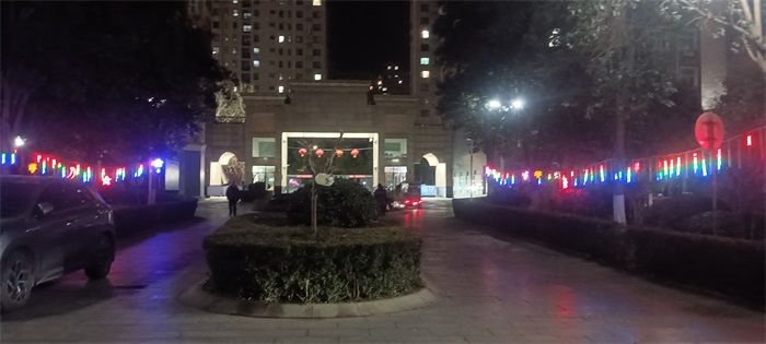 为烘托浓厚节日氛围,小区主干道、公共活动区域陆续挂起红灯笼、彩灯及各式装饰。夜幕降临,灯火璀璨,年味扑面而来。“一出楼门就看到红彤彤的灯笼,彩灯也都亮起来了,感觉整个小区又亮堂又喜庆,心情一下子就好了!”居民赵先生傍晚散步时,对小区的布置赞不绝口。