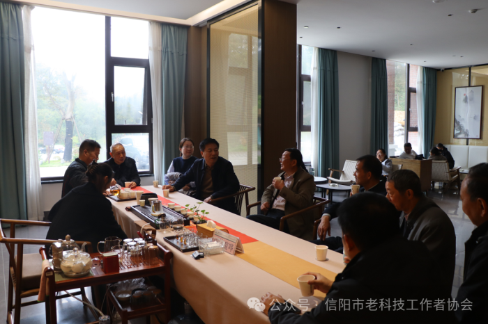 在睡仙桥社区,沿着环南湾湖步道继续前行,湖光山色与乡村景致交相辉映,“大美浉河第一村”的生态魅力扑面而来。在讲解员引导下,大家实地察看豫茗茶庄园、仙桥里露营基地等特色业态,当得知社区通过整合山水资源打造文旅产业链,2024年接待游客超20万人次时,老干部们纷纷为乡村产业发展的亮眼成绩点赞,深切体会到生态优势转化为民生福祉的生动实践。健步结束后,大家围坐交流,市科协相关负责人向老干部们介绍近期工作进展,老干部们结合当日所见所感积极建言,纷纷表示愿继续发挥经验优势,为科协事业和乡村发展贡献“银龄智慧”。