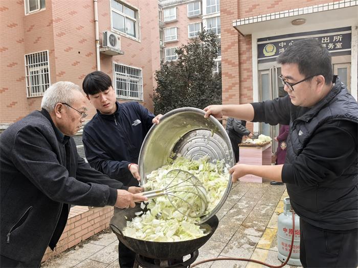 活动当天,社区门口暖意融融,党员、网格长们还主动承担起厨师和食材清洗、改刀、翻炒等工作,大铁锅热气升腾,五花肉煸出油脂,加入蔬菜翻炒后兑入高汤慢炖,食材在锅中翻滚出诱人香气,邻里乡亲围坐在一起,共品热气腾腾的大锅菜,拉家常、话家常,现场欢声笑语不断,尽显“邻里一家亲”的和谐氛围。