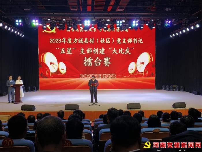 为深入贯彻新时代党的建设总要求和党的组织路线,评选出政治领导力强、思想引领力强、群众组织力强、社会号召力强的先进党支部,充分激发党支部书记队伍干事创业活力,1月11日,河南省南阳市方城县举行2023年度村(社区)党支部书记“五星”支部创建“大比武”擂台赛。