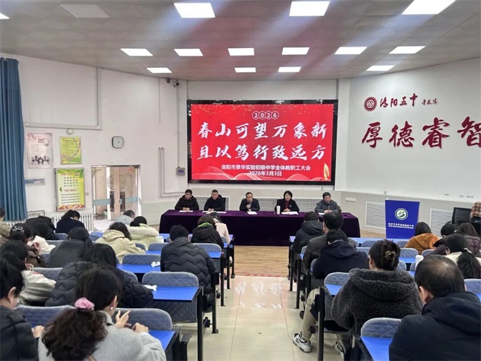 河南党建新闻网讯(孙红燕)人勤春来早,奋进正当时。2026年3月3日,洛阳市景华实验初级中学召开2026年春季学期开学工作会议。全体教职工齐聚一堂,共话发展、共绘蓝图,为新学期工作吹响奋进号角!
