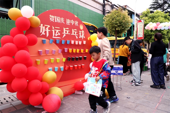 表演活动结束后,韩富安宣布游园活动开幕。紧接着大家一起来到游园活动现场的摊位前,参加庆国庆迎中秋——好运乒乓球、玉兔套圈圈、诗词飞花令、猜灯谜等活动。