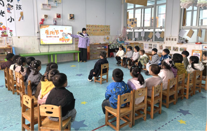 当天,红星幼儿园各班级同步开展了重阳节主题班会活动,老师们通过视频、图片等给孩子们讲解重阳节的来源和习俗等。