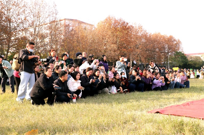 当天下午,暖阳下的体育场上,人潮涌动。用枫叶制作的枫树,用橡皮和杨树枝叶等制作的月亮、蘑菇、卡通小熊等,点缀在体育场上,点燃了运动会如童话般热烈的氛围。