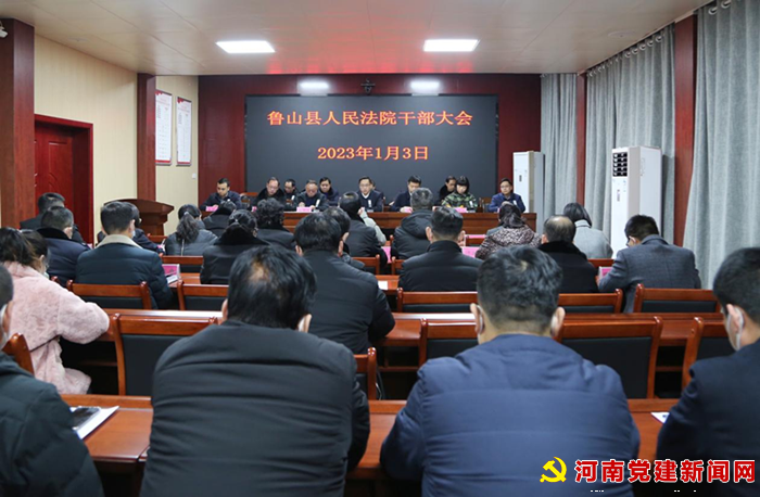 河南党建网讯(马文忠 赵全文 耿海鑫)1月3日下午,鲁山县人民法院召开干部大会,宣布市委关于该院部分领导干部职务任免的通知、欢迎新任职班子成员到任,并对下阶段工作进行安排部署。党组书记、院长谢磊主持会议并讲话,班子成员、科级干部、中层正副职、员额法官及法官助理参加会议。