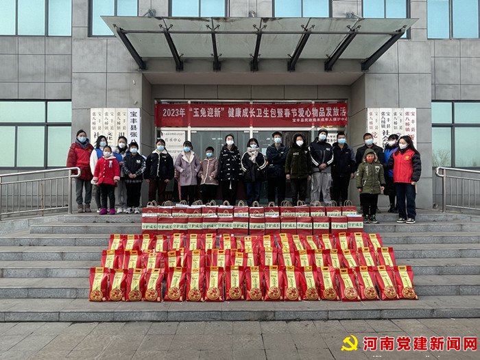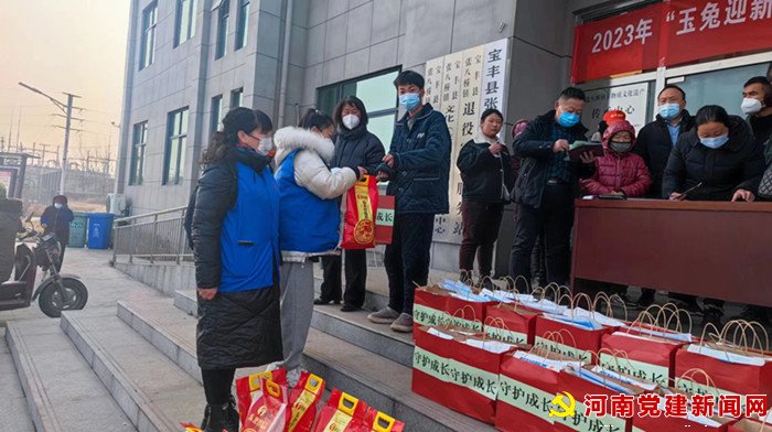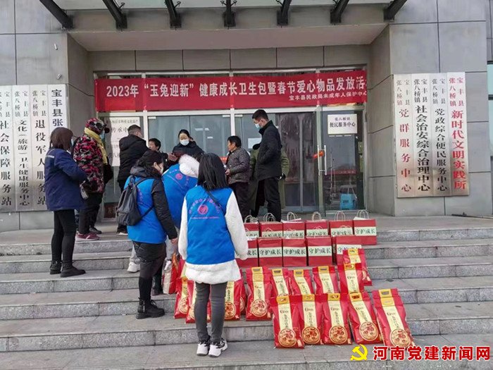 河南党建网讯(李万全 通讯员 杨艳旭 史军伟) 1月10日上午,在宝丰县张八桥镇党群服务中心门口,县民政局举办的2023年“玉兔迎新”健康成长卫生包暨春节爱心物品发放活动在该镇社会保障所工作人员的协助下正在有序进行。该镇部分困境儿童代表在各自家长的陪伴下,每人领到一份装有口罩、抽纸、毛巾等物品的爱心礼包和大米一袋,与会家长们纷纷向工作人员表示感谢。
