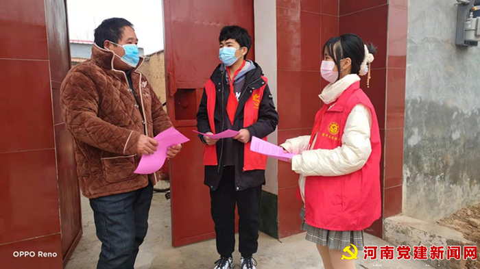 “大伯,您好,请您做好自我防护,外出时一定要佩戴好口罩......”在村干部的带领下,12岁的李沁洁和14岁的李金洵正在挨家挨户发放疫情防控知识宣传页。