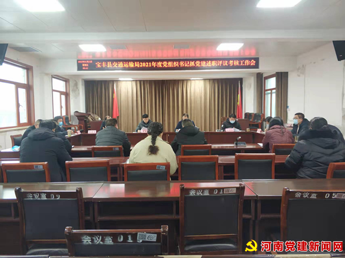 河南党建网讯(李万全通讯员高磊)为全面检验交通运输系统党建工作成效,推动全面从严治党向基层延伸,1月21日上午,宝丰县县交通运输局召开2021年度党组织书记抓基层党建述职评议考核工作会议,局党组成员、系统各党支部书记和局属各单位主管党建副职参加会议。