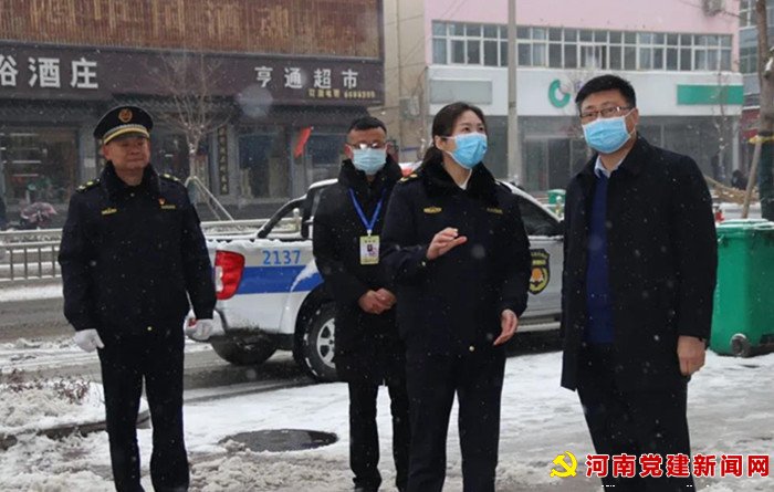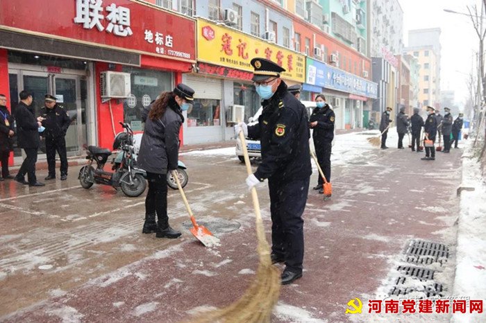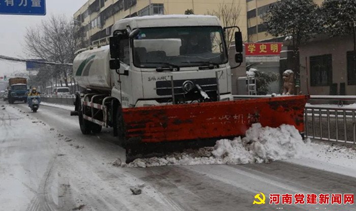 河南党建网讯(李万全 通讯员赵晓丹)疫情防控还在紧张进行,一场瑞雪普降全城。1月21日,由于受较强冷空气影响,宝丰普降大雪,雪后的县城银装素裹,路面、房顶覆盖了一层厚厚的白雪。雪景虽美,也给交通出行带来了诸多不便,为保证道路交通和广大市民出行安全,宝丰县城市管理局立即启动雨雪冰冻天气应急预案,干部职工全员上岗,出动除雪机械设备,在做好疫情防控工作的同时,浴“雪”奋战,奋力铲除道路积雪,打响抗冰雪、保畅通、防疫情会战,保障雪天道路安全畅通。