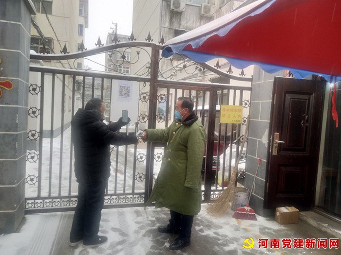河南党建网讯( 李万全通讯员 柳真真 王伟丽)1月21日,宝丰县迎来了降雪天气,气温骤降,风雪交加。宝丰县政协志愿者们不畏风雪,尽职尽责地守好社区疫情防控卡点,刻画出风雪中最美身影。