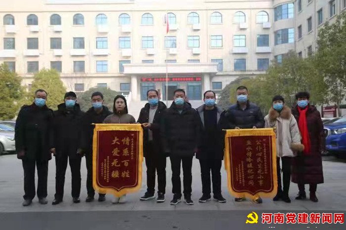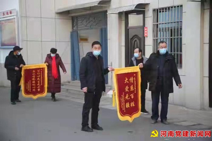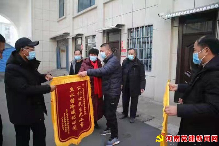河南党建网讯(李万全 武全洲)“今天我们送来锦旗特向你们表示真诚的感谢”。1月20日上午,宝丰县永信物业服务公司经理杨国强和新城名郡业委会主任贾国民等,手执锦旗送到周庄镇和县房管局。