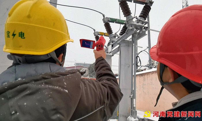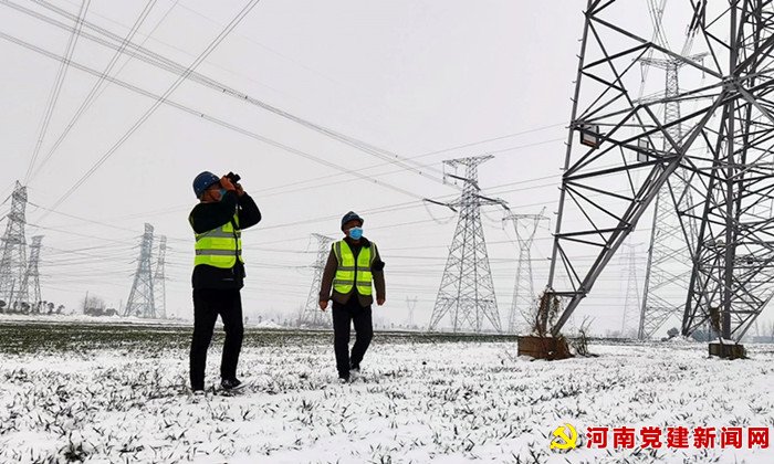 河南党建网讯(李万全通讯员杨洪生)“35千伏堂高线25号铁塔绝缘子运行正常。”1月21日,平顶山地区迎来第一场雨雪天气,气温低至零下3度,宝丰县供电公司运维检修部工作人员对该线路开展特巡,实时监测线路运行情况,并做好记录。