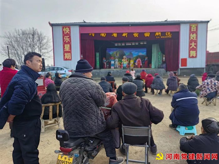 河南党建网讯(李万全 李河新) 为了欢天喜地迎新春,丰富群众文化生活,引领乡村文明风尚,共享文化惠民红利,提升广大群众幸福感获得感。2月8日下午,鲁山县辛集乡白村村民和驻村工作队自筹资金,举办“情暖白村•戏送万家”戏曲演出活动,为群众奉上了一道精美的“文化大餐”。