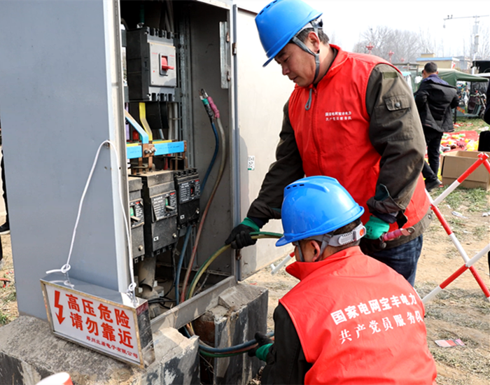 河南党建网讯(李万全 杨梦 张乐乐 史军伟)2月19日,正月初十,国网宝丰县供电公司杨庄中心供电所、营销部青年突击队等人员提前来到宝丰县杨庄镇马街村“马街书会”现场,为“摆摊设点”的商户排查用电隐患、讲解安全用电知识,全力为马街书会期间安全可靠供电护航。