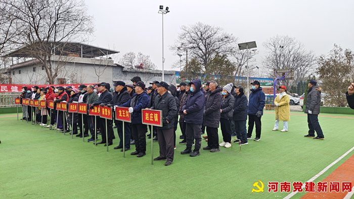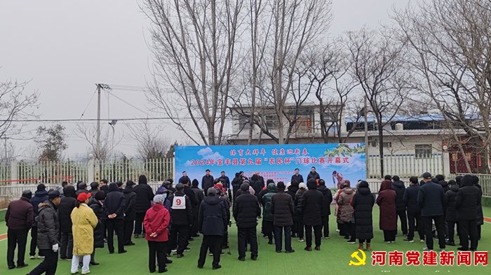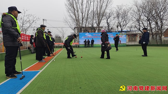 河南党建网讯(李万全 郭文华 史军伟 )为活跃和丰富全县春节期间群众文化生活,提高全县门球爱好者竞技水平及参与热情,普及门球健身知识,促进全民健康及老年体育工作,2月29日上午,“体育大拜年 健康迎新春”2024年宝丰县第九届“农民杯”门球赛在宝丰县商酒务镇张洛庄村门球场开赛。来自全县各单位、乡镇的15只代表队120名门球队队员参加比赛。