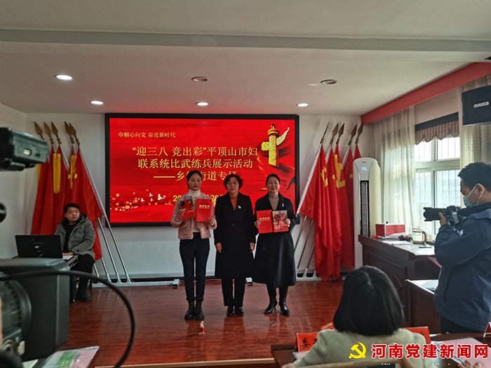 河南党建网讯(李万全通讯员岳爱霞) 2月28日上午,在宝丰县城关镇东中社区会议室,平顶山市妇联系统“迎三八 竞出彩”比武练兵活动正在紧张有序进行。