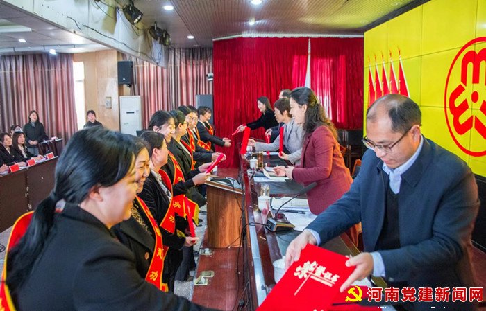 会上李建军宣读了受到市级以上表彰的先进集体和个人名单;陈延庭宣读了《中共鲁山县委关于表彰妇女工作先进集体和个人的决定》;并对获得鲁山县“三八”红旗集体,巾帼文明岗,三八红旗手和巾帼建功标兵的代表颁发了奖牌和荣誉证书;先进集体和个人代表赵村镇妇联、陈海乐分别作了交流发言。