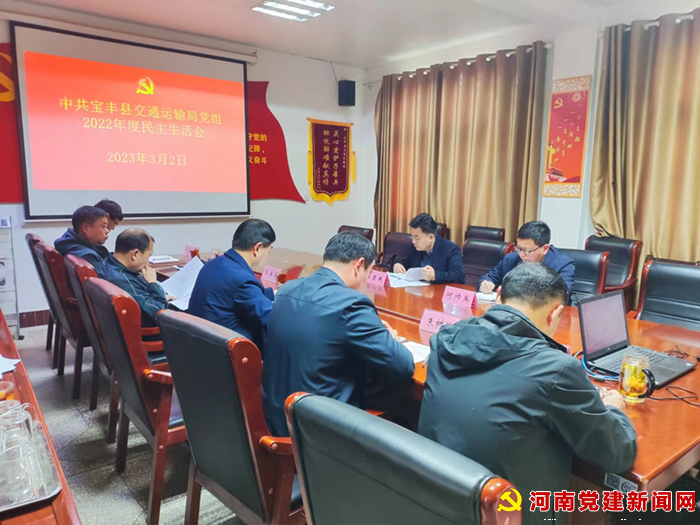 河南党建网讯 (李万全通讯员高磊) 3月2日下午,宝丰县交通运输局党组召开2022年度民主生活会,县委组织部副部长、第一督导组组长郭亚民、部务委员何帅兵到会指导。会议由局党组书记、局长董国旗主持,局党组成员参加会议。