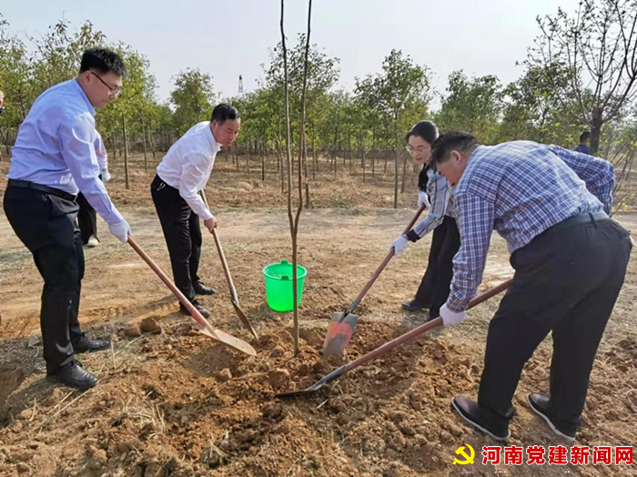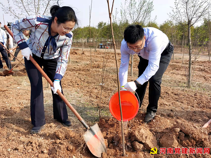 河南党建网讯(李万全通讯员周军伟)春回大地万物苏,植树添绿正当时。在第44个植树节到来之际,3月11日下午,平顶山市自然资源和规划局一行10余人到宝丰县张八桥山张公益林开展植树造林活动,宝丰县政府副县长陈国辉陪同植树,县自然资源局相关负责人参加植树活动。