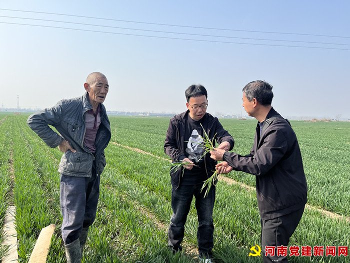 河南党建网讯(李万全通讯员柳真真王旭歌)农谚称:“到了惊蛰节,锄头不停歇。”对于河南省宝丰县农业农村局的农技人员们来说,农技指导是一刻也不能歇。3月7日,笔者在河南省宝丰县前营镇大连庄村的麦田看到,农技人员正认真查看小麦长势,向种植户询问小麦春季管理情况,帮助指导种植户因地、因苗、因时科学做好农作物春季田间管理。
