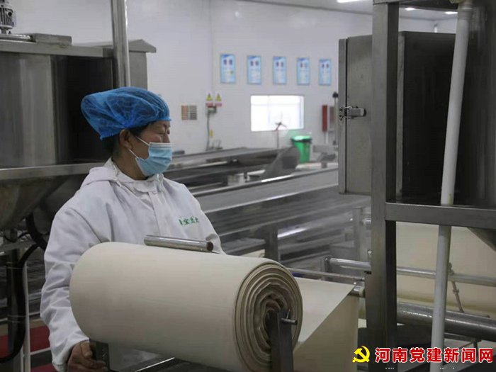 河南党建网讯(李万全卢翱翔)当第一缕阳光撒向广袤的大地,宝丰县张八桥镇山张村的豆制品产业园里机器轰鸣,豆香四溢。一块块豆腐、一箱箱豆皮已经装车,准备送往周边各地市的商超里。