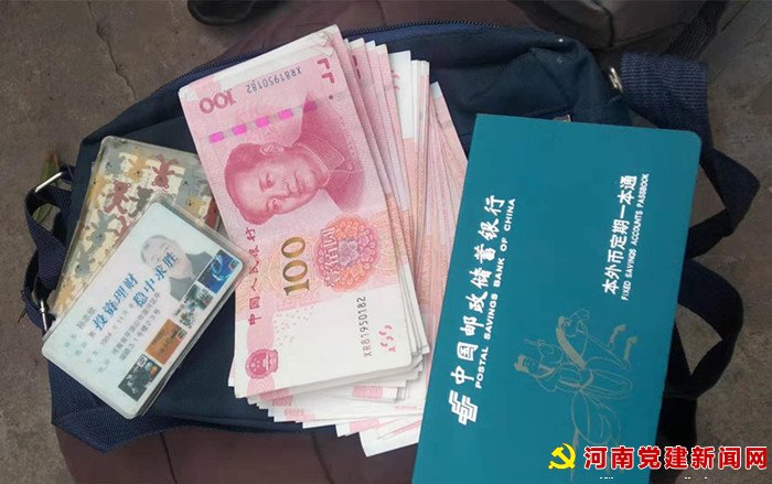 河南党建网讯(李万全杨耀东)太感谢上河小学的杨伟老师了,还把我丢失的包和包里5600元现金、手机、各种银行卡和证件给我送过来,真是太感谢了!我要为他拾金不昧的行为大大地点个赞。”3月16日下午5点半左右,宝丰县周庄镇上河清真寺阿訇孙志欣拿着自己失而复得的包、现金、手机证件激动地说。