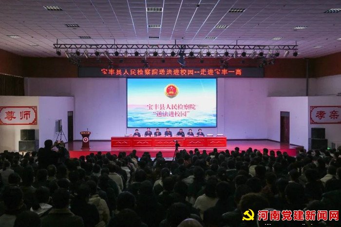 河南党建网讯(李万全通讯员庞涵)为切实增强未成年人法治意识和自我保护意识,预防和减少未成年人违法犯罪,3月17日,宝丰县检察院党组书记、检察长闻延菲以法治副校长的身份,带领普法宣讲团到宝丰县第一高级中学为600余名学生及家长开展法治教育。