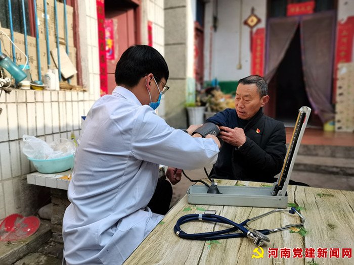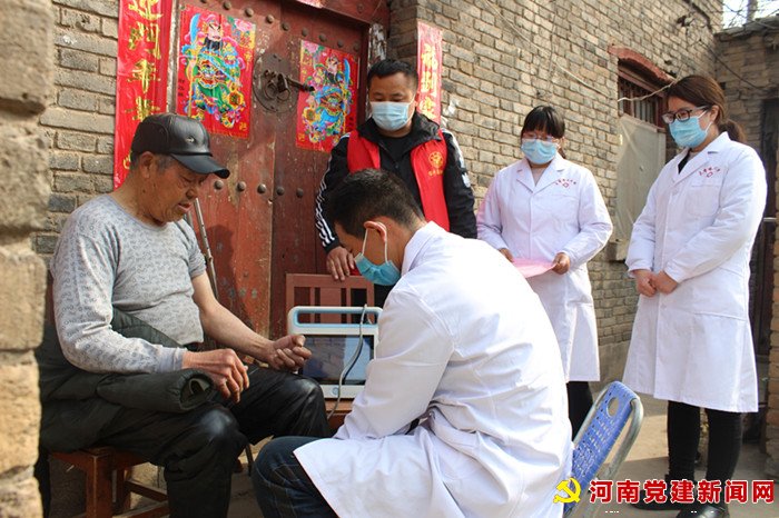 河南党建网讯(李万全 通讯员 柳真真 杜茹雅)3月16日上午,宝丰县大营镇卫生院医护志愿者到该镇78岁老兵杨广林家中为其免费进行康复理疗。