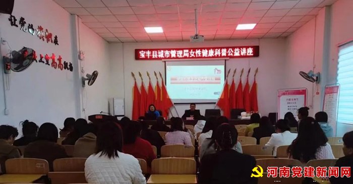河南党建网讯(李万全 赵晓丹)为关爱城管系统广大女性身体健康,提升女性干部职工的健康意识和自我保健能力,倡导健康生活方式,3月20日下午,宝丰县城市管理局在机关党校举办以“关爱女性‘助’健康 凝聚奋进‘她’力量”为主题的健康知识讲座。此次讲座由县城市管理局党组成员、副局长胡永辉主持,50余名城管系统女职工现场聆听讲座。